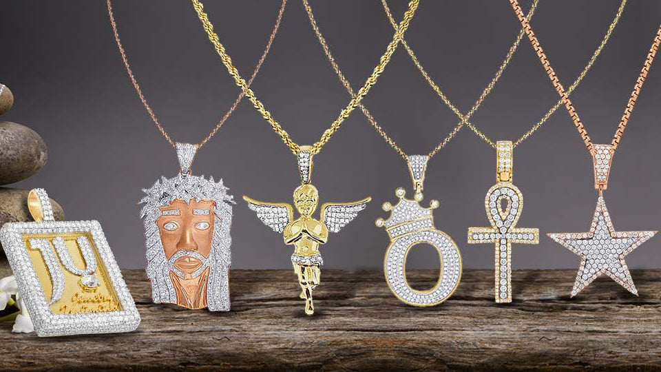 We carry various pendants - religious pendants, initial pendants, gold nameplates, custom pieces, and more! Our pendants are made with real gold, and can be found with diamonds or cubic zirconia.